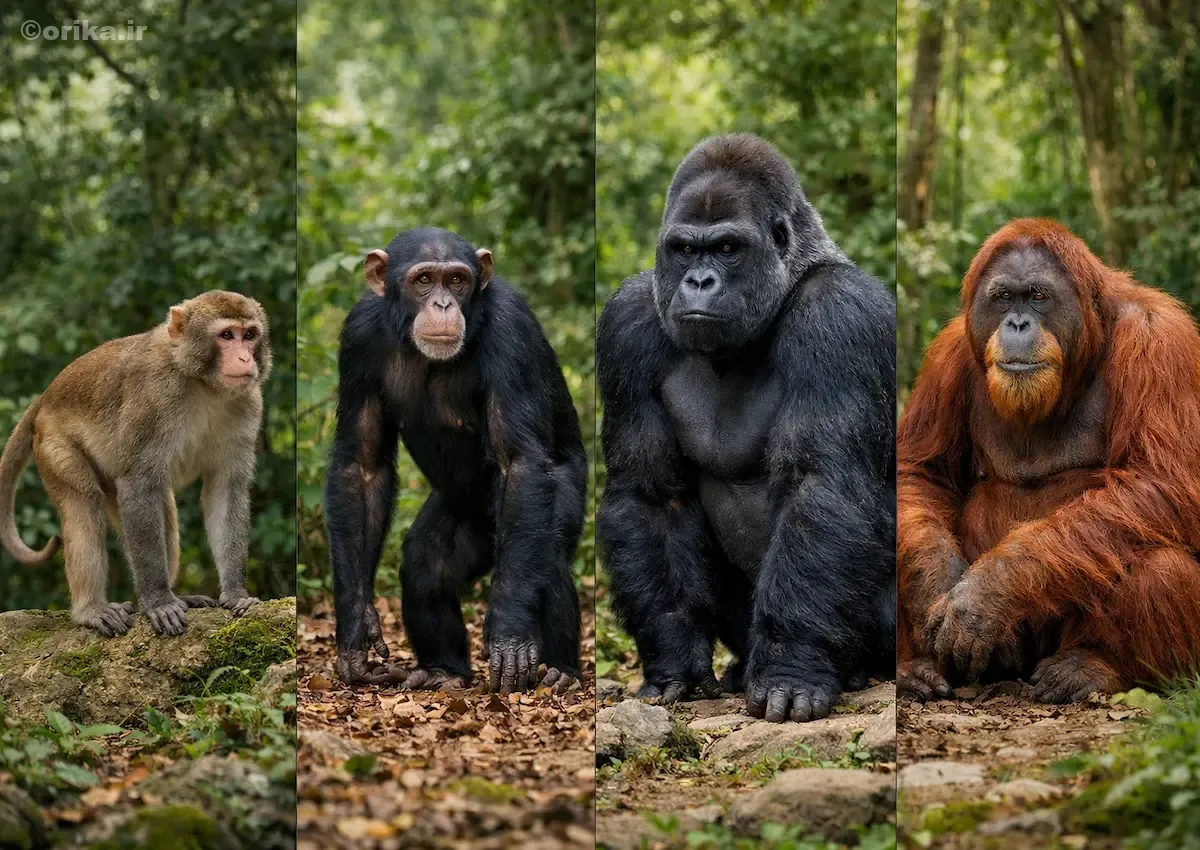 مقایسه میمون، شامپانزه، گوریل و اورانگوتان